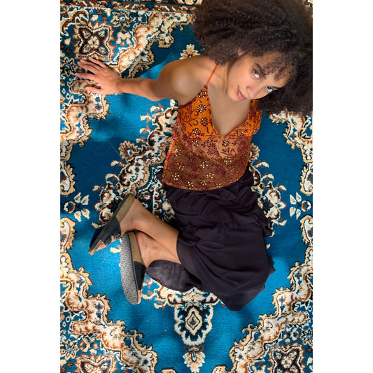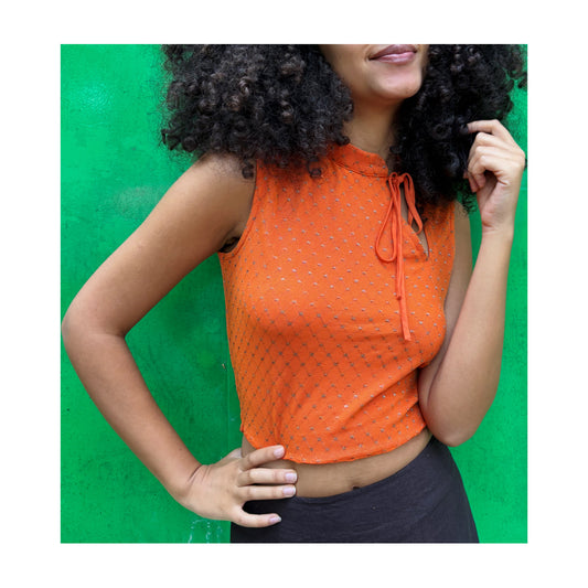 Orange gold checkered top