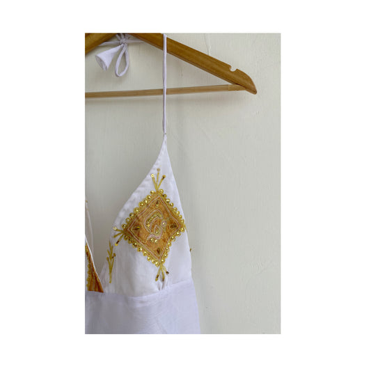 White with gota work halter neck