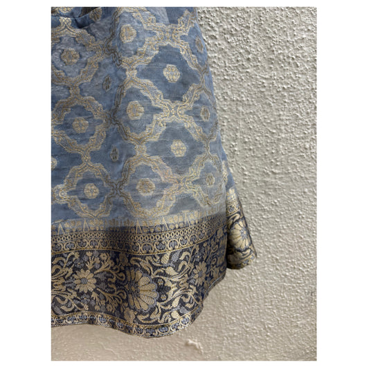 Mustard red with aari work and frill golden lace