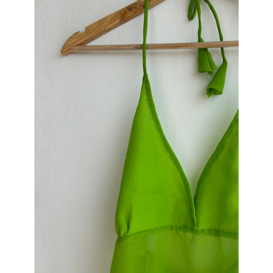 Golden stripes silk halter neck