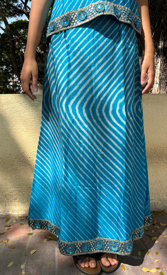 Blue bandhani lehriya set