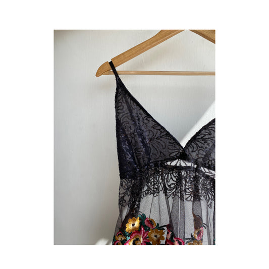 Black sequins bust with floral embroidery