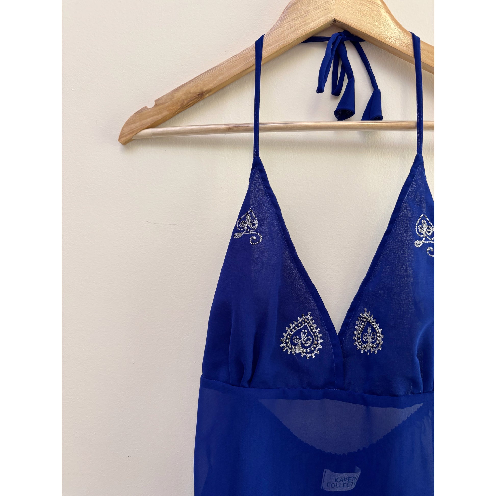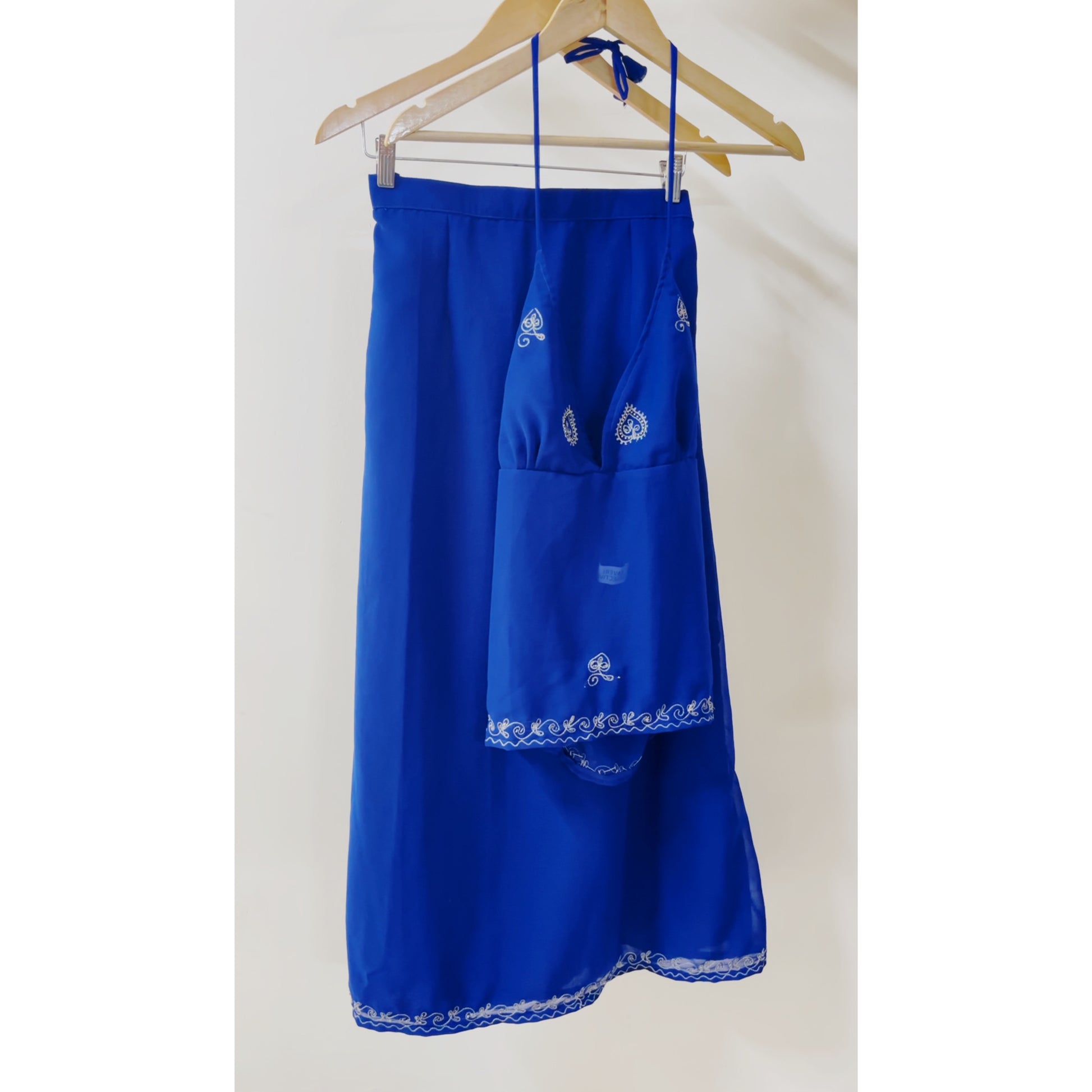 Top : Georgette. Bust lined. Thread and bead work. Halter neck.
