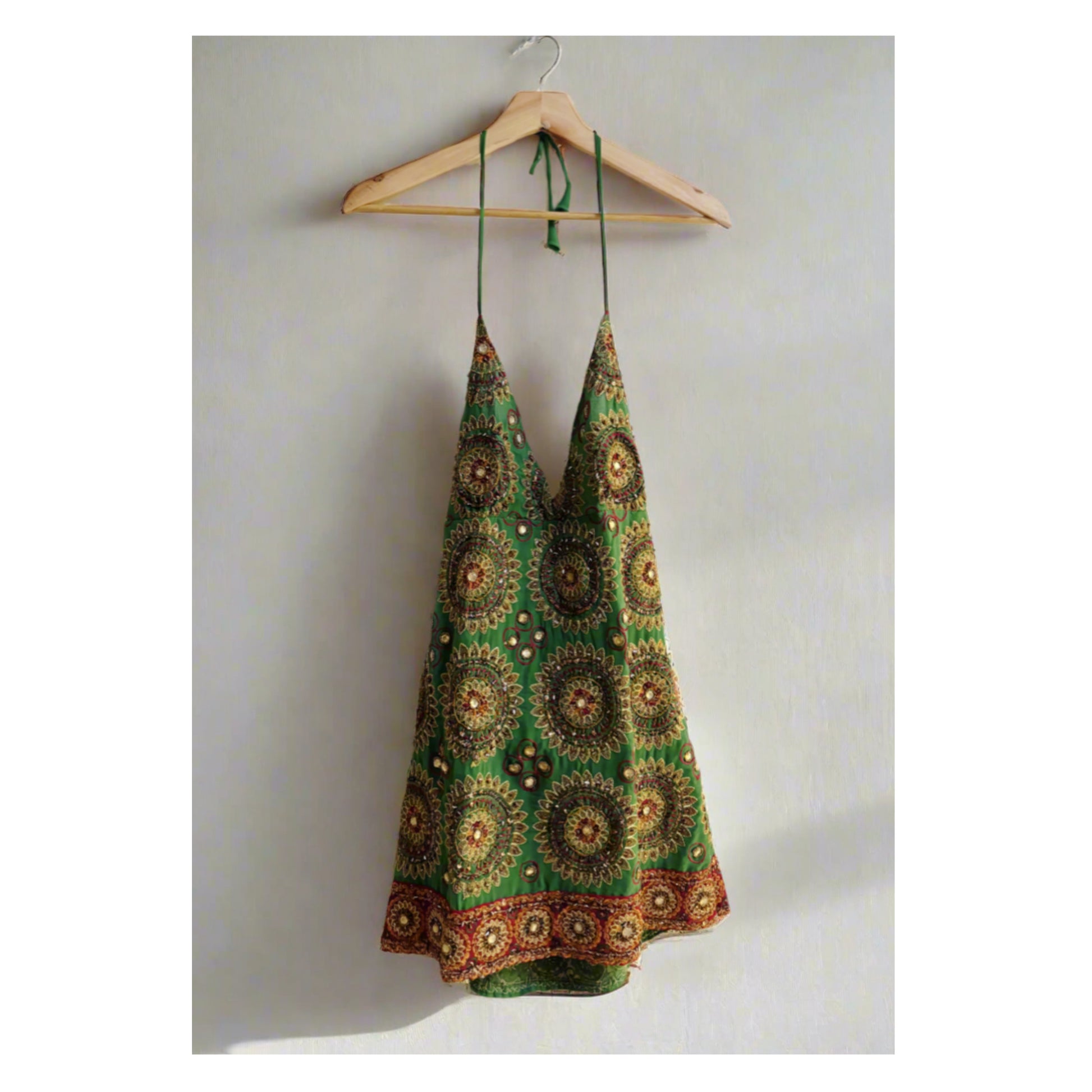 Green katadana and mirror work dress