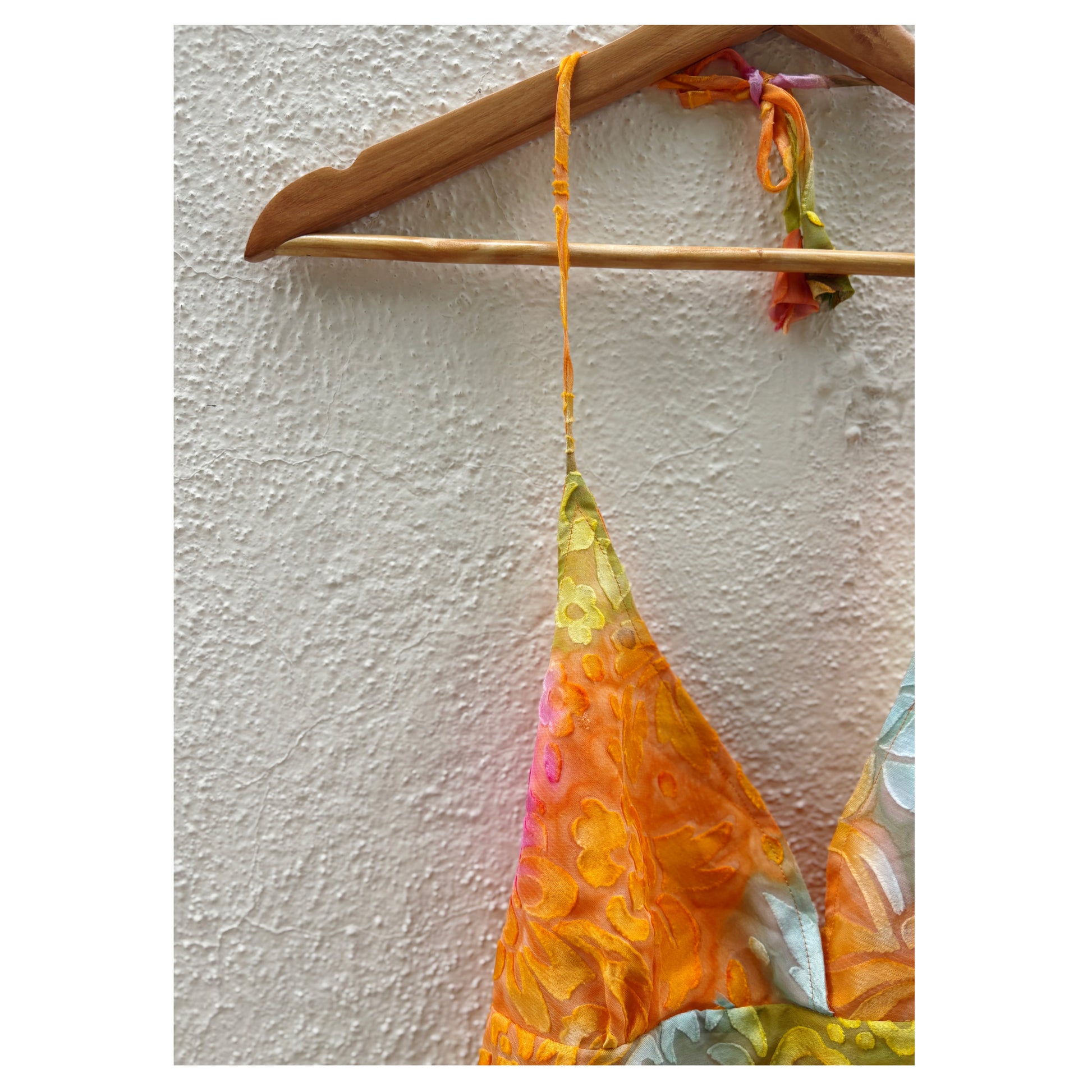 A burst of color in every petal—this halter top blends romantic hues with a breezy silhouette. Crafted in lightweight organza with a soft cotton lining.
