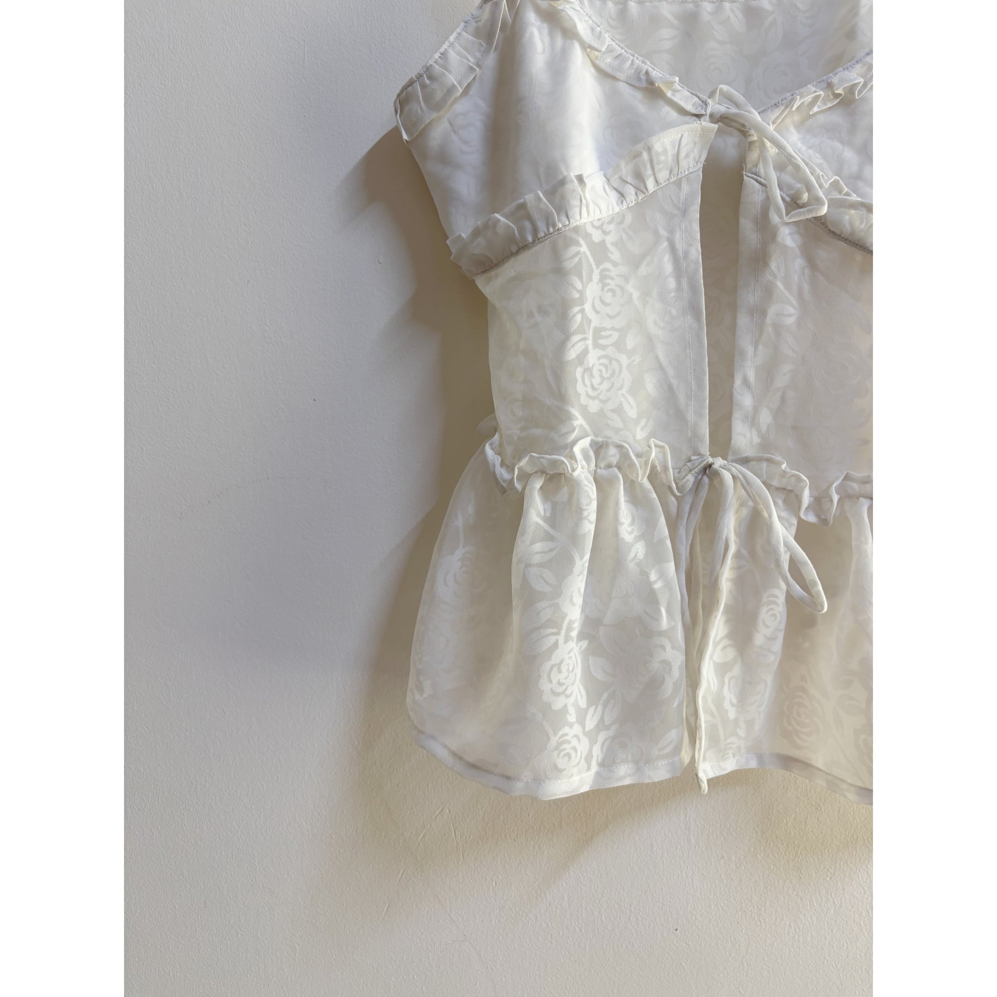 chiffon. Bust lined with cotton. Two ties in front. Adjustable straps.