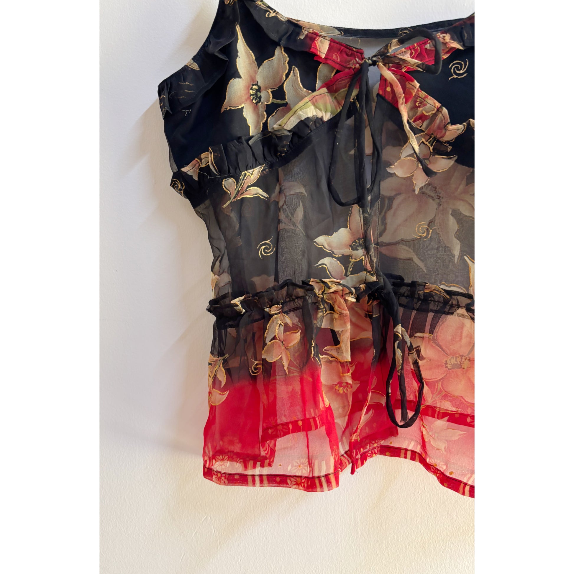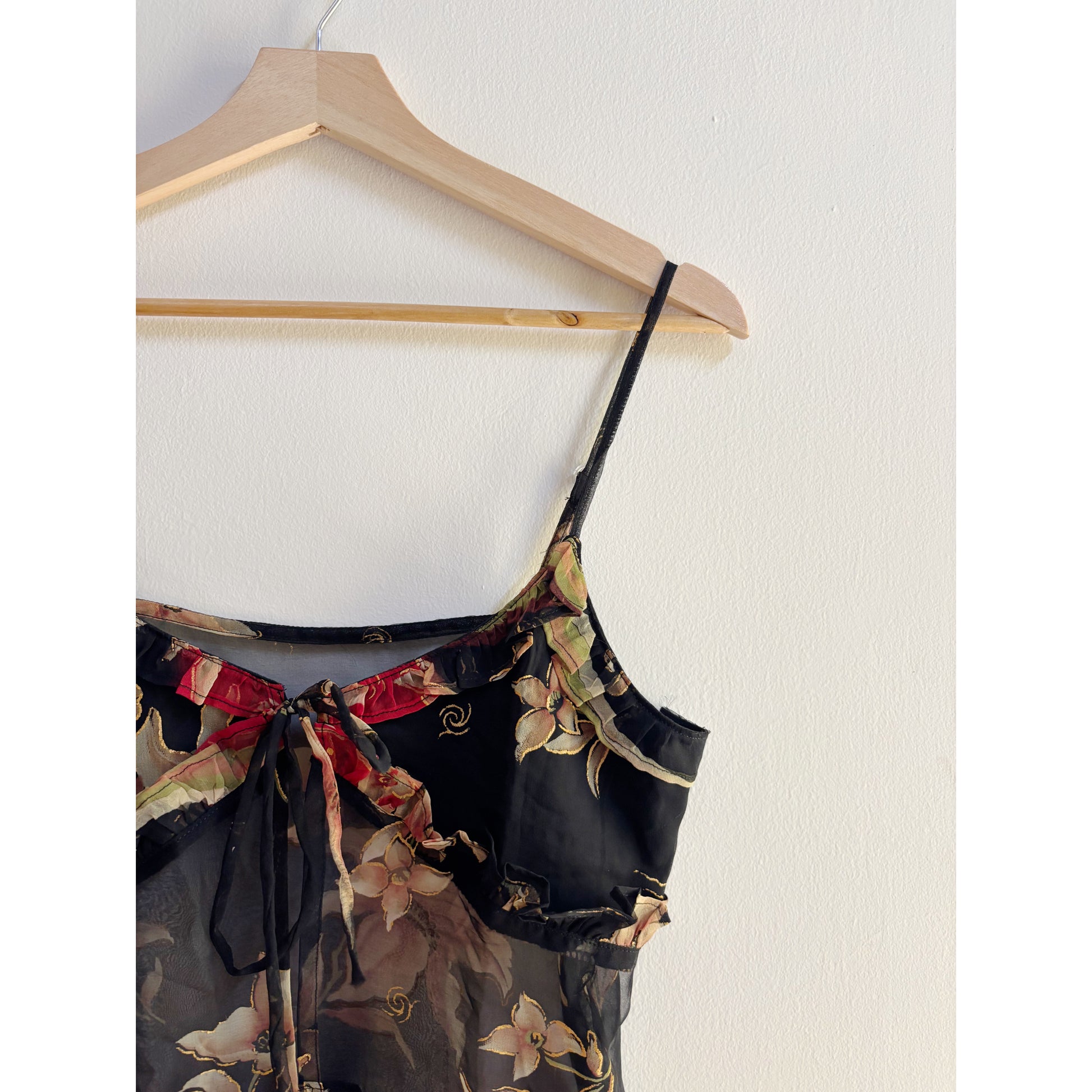 Georgette. Bust line with cotton. Front two ties with adjustable strap.